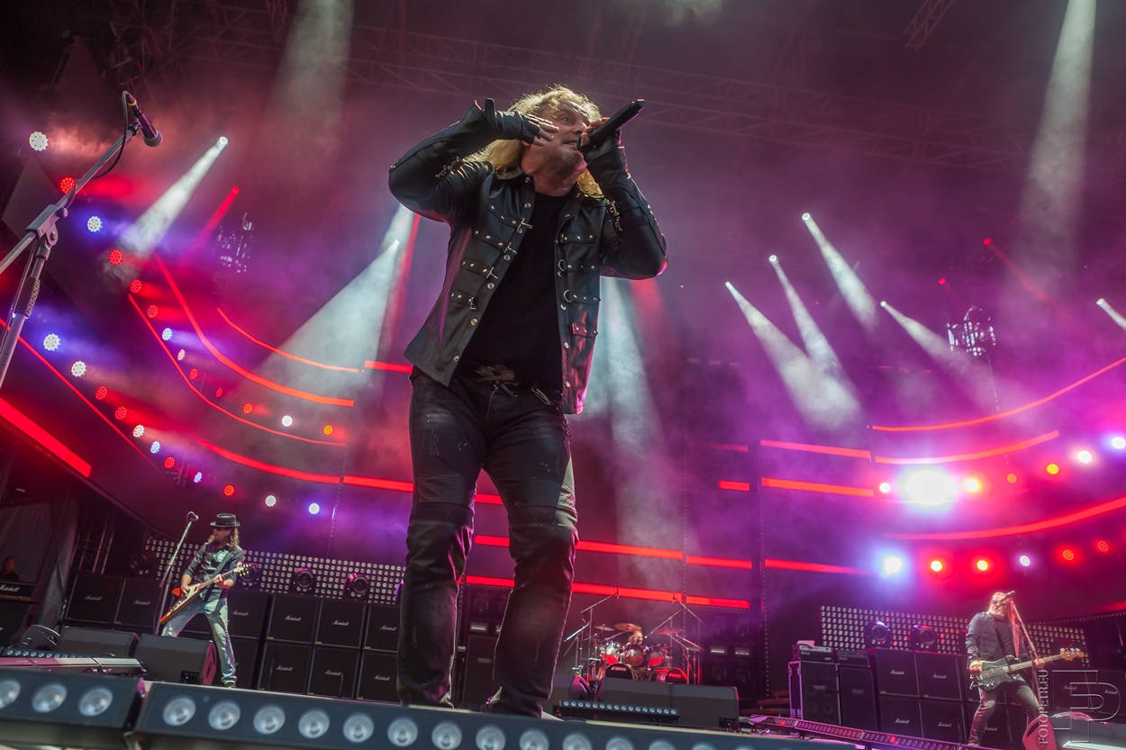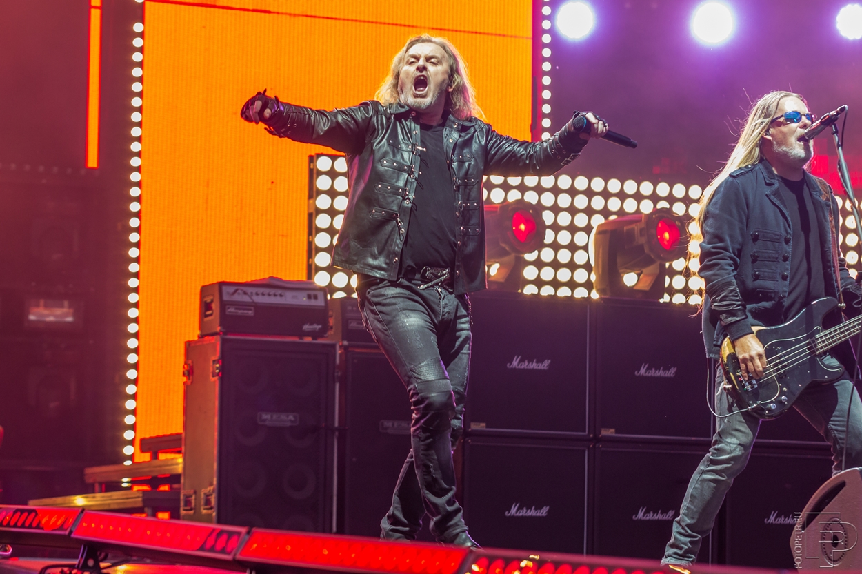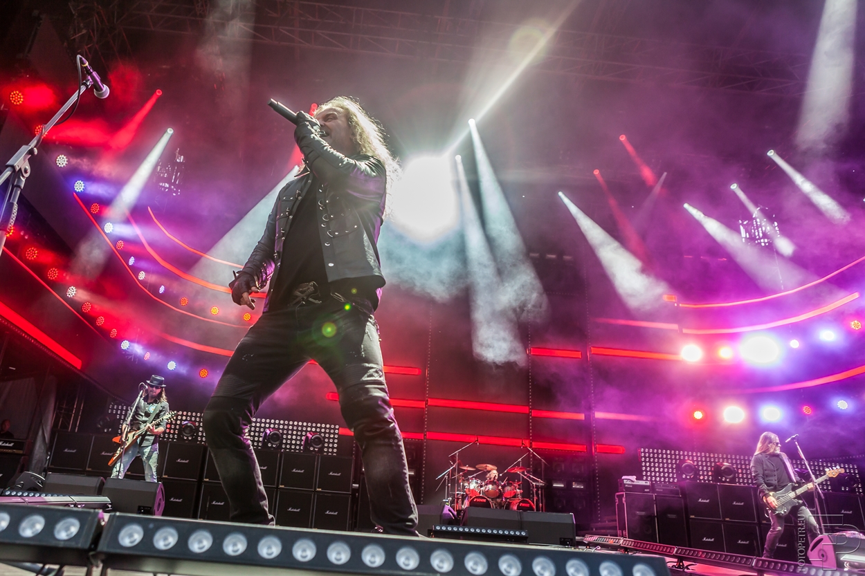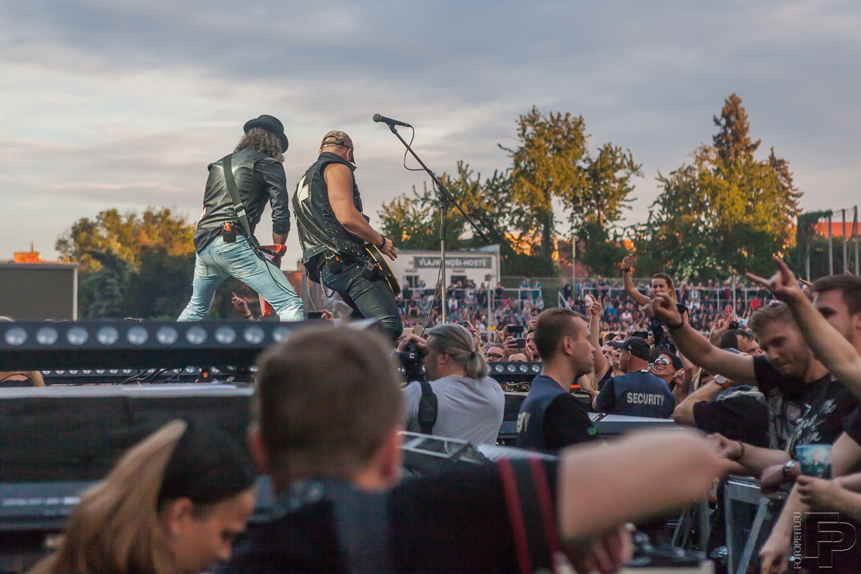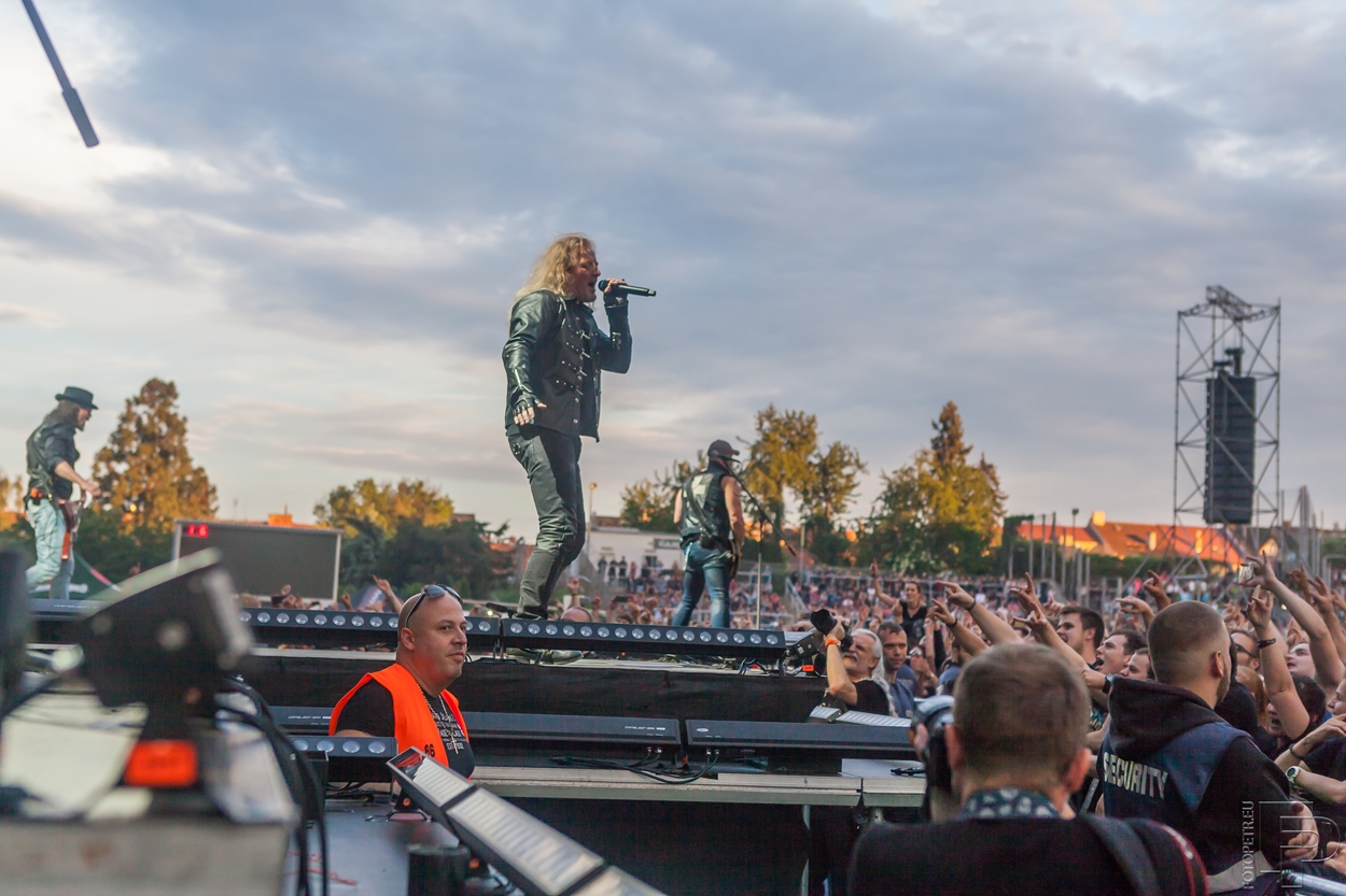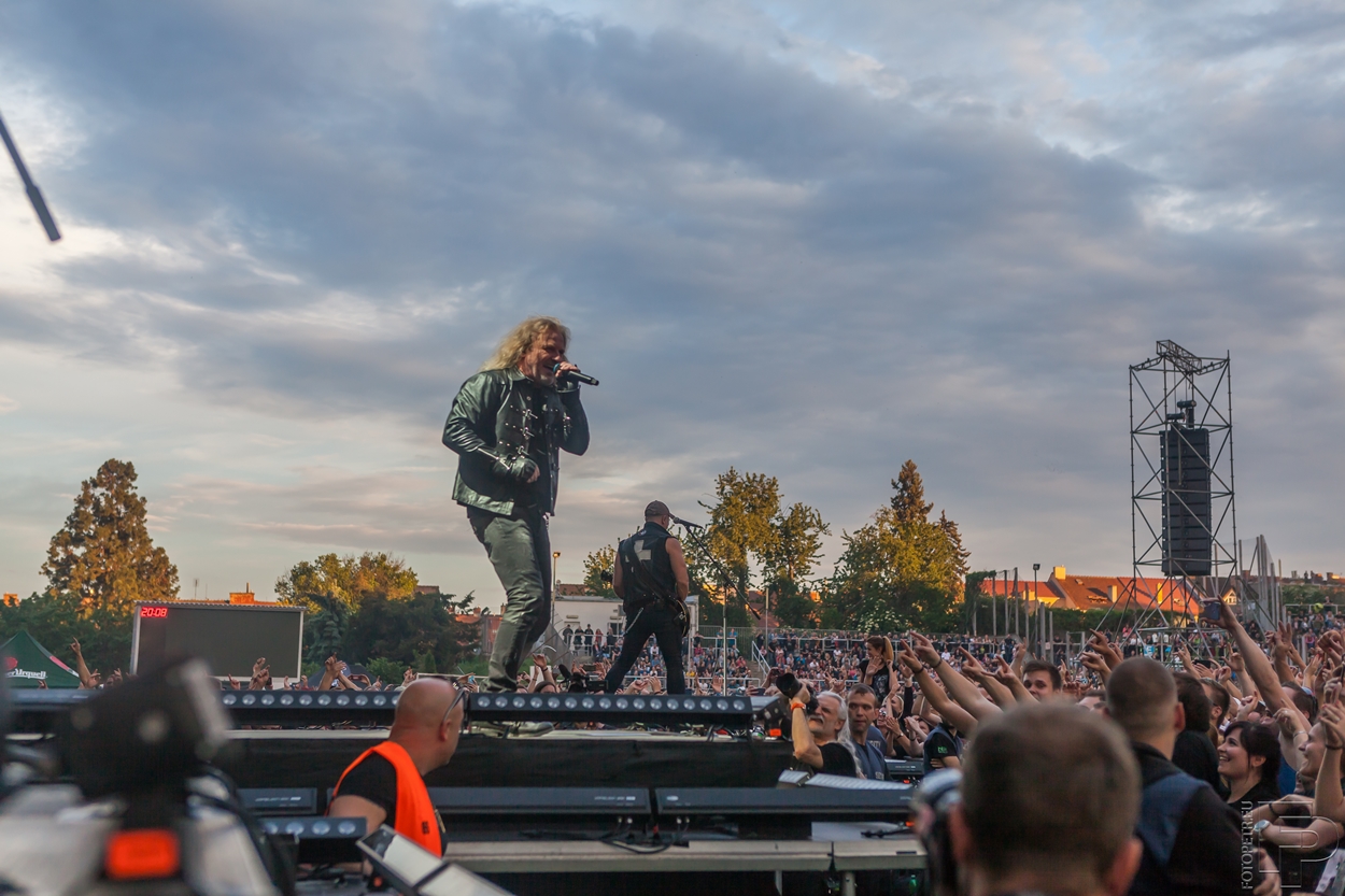 Ale po jejich setu fanoušci už toužebně čekali na hlavné hvězdy večera. Vítalo je pódium, které bylo – zcela v souladu s předkoncertními zvěstmi z kabátího tábora – na úrovni zahraničních hudebních hvězd, nesměly chybět propracované projekce.