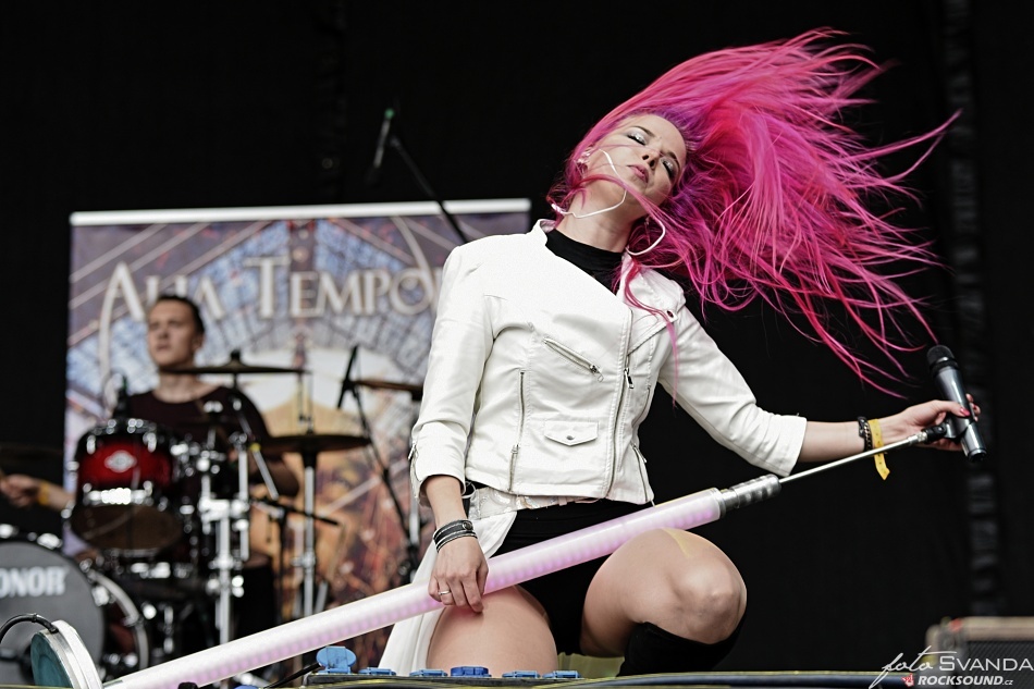 Jak jsme se všichni dověděli den před začátkem festivalu ze stránek Pragokoncertu a Masters of Rock, kapela To the Rats and Wolves musela zrušit svou účast ze zdravotních důvodů. Jako záskok byla narychlo povolána brněnská kapela Alia Tempora. Jedná se o mladé originální uskupení, které vyvrací zažitou představu, že barvou metalu je pouze černá – frontmanka Markéta Morávková má růžové vlasy, vystoupila v bílém a fanoušky nazývá „jednorožci„. Alia Tempora tedy kombinují pop s metalem; fantazijní svět, pro metal obvyklý, u nich má podobu duhového světa jednorožců a promyšlený je i takový detail jako stojan na mikrofon, který se zbarvil do duhova. Přijetí ze strany fanoušků bylo vcelku kladné, v půl dvanácté však bylo na ploše ještě málo lidí.