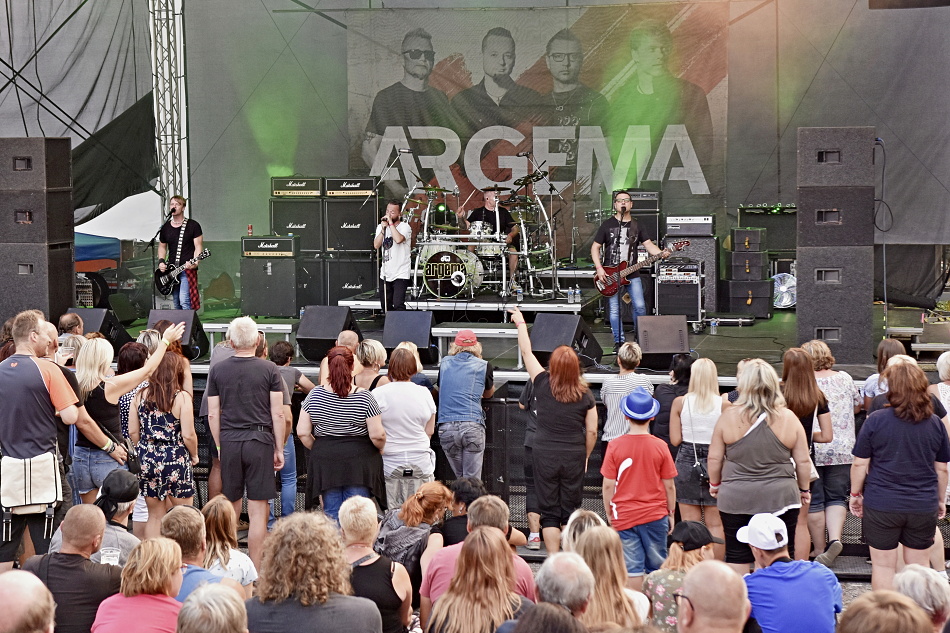 Brány s nekončící frontou se otevřely v půl sedmé večer a za necelou hodinu vystoupila první ze čtyř kapel – Argema z Uherského Hradiště v čele s místním zpěvákem Jardou Hnilicou z nedalekého Kadova. Areál letního kina se velmi rychle plnil, a i sedící fanoušci zpívali jejich známé hity. Zhruba v polovině setu si Jarda pozval na pódium svého syna a společně zazpívali skladbu Jarošovský pivovar.