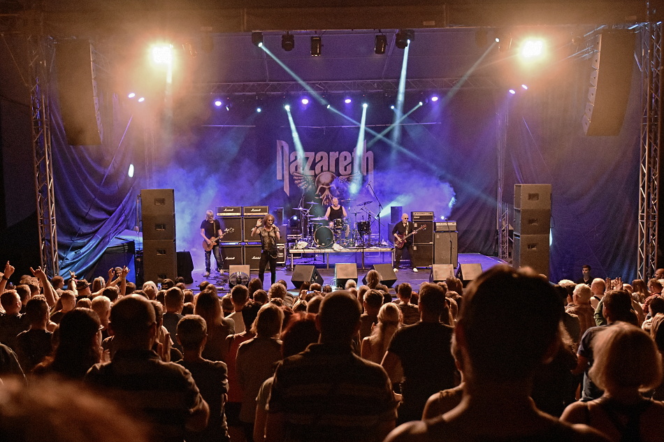 Po velkém potlesku se scéna mohla již připravit pro hlavní hvězdu celého večera – skotské Nazareth. Tato světoznámá kapela dokázala za své působení prodat více než 35 milionů desek a hity jako Love Hurts nebo Dream On zná určitě každý. Letos kapela slaví 50 let na scéně a jediný zakládající člen, baskytarista Pete Agnew, letos v září dovrší 72 let. Nakonec se po dlouhé zvukové zkoušce všichni přece jen dočkali a hvězdy jim to oplatily velice kvalitním vystoupením.