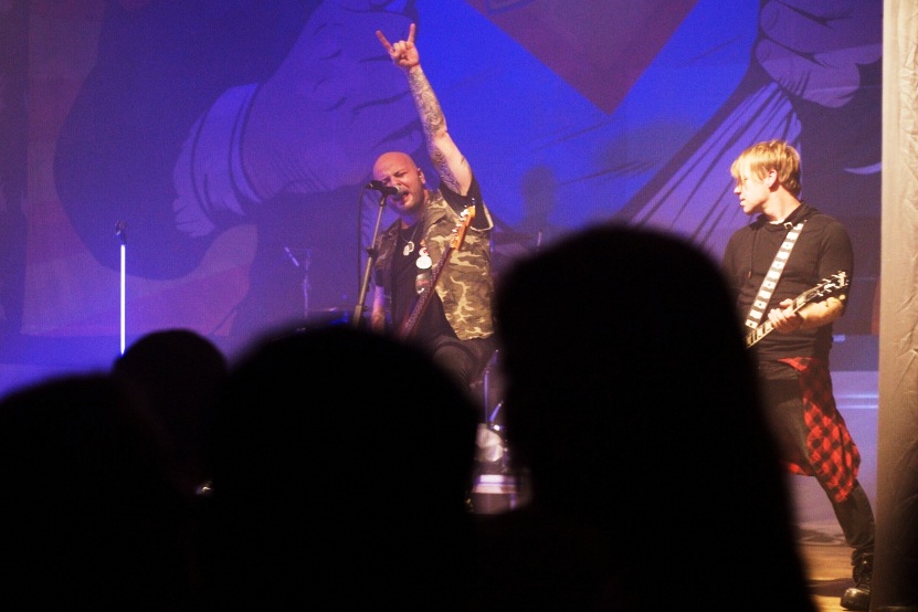 V sobotu 2. 11. tahle kutnohorská partička roztančila natřískaný kulturák a roli speciálních hostů turné přijala kapela Street69. Už při příjezdu ke kulturáku nám bylo jasné, že dneska bude pořádný kotel! Sál se otevíral zhruba hodinku před začátkem první kapely, proto bylo dost času se posilnit něčím ostřejším (třeba na speciálním Capitan Morgan baru) nebo si v klidu prohlídnout merch kapely, který mají Rybičky 48 opravdu promakaný do detailu. Zvlášť bych chtěla ocenit trička s jejich klasickým logem a názvem města, ve kterém koncertují, nebo speciální edici triček k 30. výročí Sametové revoluce.