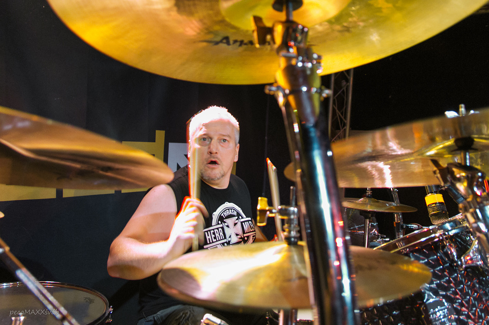 Pár minut po dvaadvacáté hodině vtrhl na „bojiště“ Debustrol – thrashmetalový tank dobývající naši zemi už čtvrtou dekádu. Melodka praskala ve švech a do uší metaluchtivých fanoušků se zarývaly skladby Trendshit, Vyhlazení, Nasrat vám všem, Válka, Yugoslavia, Protest, Krvavá práce, Antikrist, Vyznání smrti a další klenoty této smečky. Z výběru skladeb je zřejmé, že kapela pálila ostrými z téměř všech svých alb – Neuropatolog, Svět co zatočí s tebou, Vyhlazení, Pád do hrobu mrtvol, Apokalismus, Přerushit a Válka. Mistr Kolinss, zabiják Önslaughter, démon Zed a mlátička Herr Miler se mohli od začátku kochat pořádným moshpitem, zpestřeným divokými skoky rozvášněných fanoušků z pódia. A fanoušek, který do toho dal stejně jako kapela všechno, z této akce odcházel „rozbitý“, jak se sluší a patří.