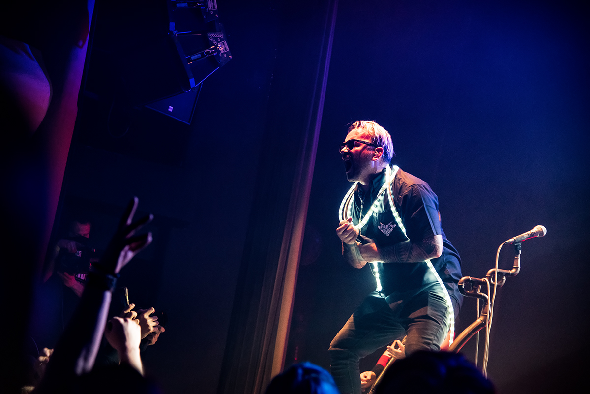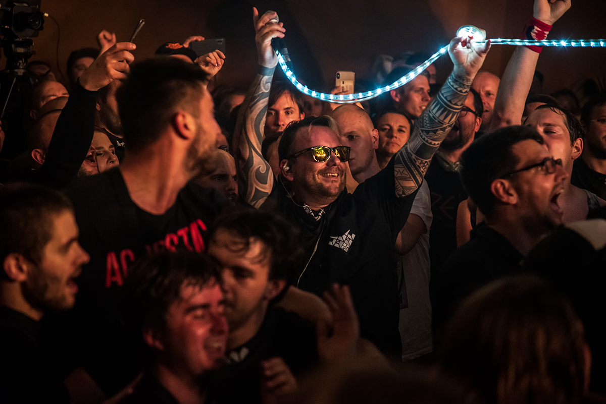 Kapela rozjela koncert jen pár minut po osmé hodině večerní. Začali hned první peckou z debutového alba, nazvanou Vocotadyde, a pokračovali dalšími songy jako Bastard, Svatej pokoj či Kořeny. Došlo i na novější skladby jako Srdce, Králům koruny, Tanči nebo Kopem, při které kapela vyzvala fanynky, aby jim dělaly vlajkonoše. Skoro celý song Bratře nedovol strávil Martin Zeller mezi fanoušky, kde je vyhecoval k „pořádnému bordelu„.