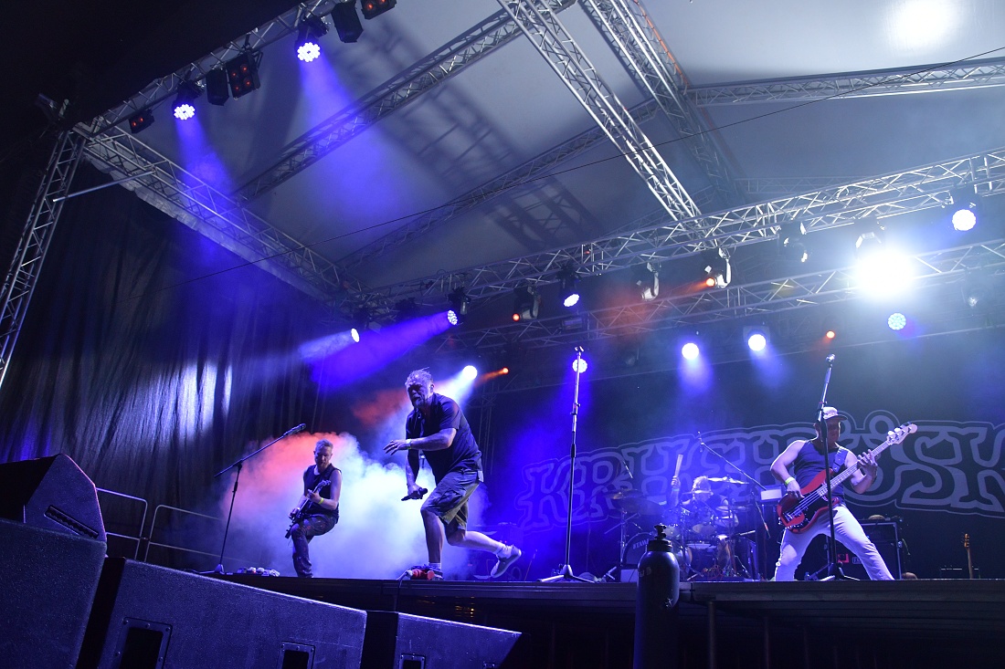 S novou tvorbou se uvedla taktéž rocková stálice Škwor. Minulý rok vydala sestava kolem frontmana Petra Hrdličky nové album s názvem Tváře smutnejch hrdinů, na které upozorňovala mohutná plachta v pozadí zobrazující motiv této desky. Při těch nejznámějších skladbách však nechával Petr s oblibou zpívat své fanoušky. Ti si střihli refrény známějších skladeb, jako jsou Může se stát, Sraž nás na kolena nebo Síla starejch vín. O pořádnou divočinu se postarali Krucipüsk, jejichž fanoušci vytvořili před pódiem mohutný kotel. Dle odezvy měla velká část přítomných naposlouchané dosud aktuální album Country Hell, a když k tomu frontman Tomáš Hajíček přidal vypalovačky jako Druide, Keltskej Osud nebo jednu z novinek s názvem Mamánek, měli zejména fanoušci v předních řadách co dělat, aby se udrželi na místě.