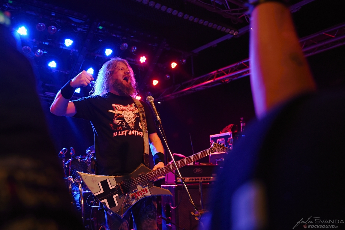 Třicet šest let je už řádná dávka muziky, kterou nám tito thrasheři po celou dobu nabízejí. Ve svém armádním skladu mají jedenáct pomyslných muničních beden s více jak 120 ostrými projektily toho nejrychlejšího a nejtěžšího kalibru. Po tříměsíční pauze se opět rozjela válečná mašinérie a v kotli pod pódiem si dav mohl zařvat texty oblíbených výstřelů jako Údolí Hádu, Antikrist, Vyznání smrti a jiné z historického dema. V další kulometné dávce zazněly střely jako Svět co zatočí s tebou, Vyhlazení, Umučená, Zakuklenci, Nasrat vám všem, Masoterian, Válka nebo Vraždící kov.