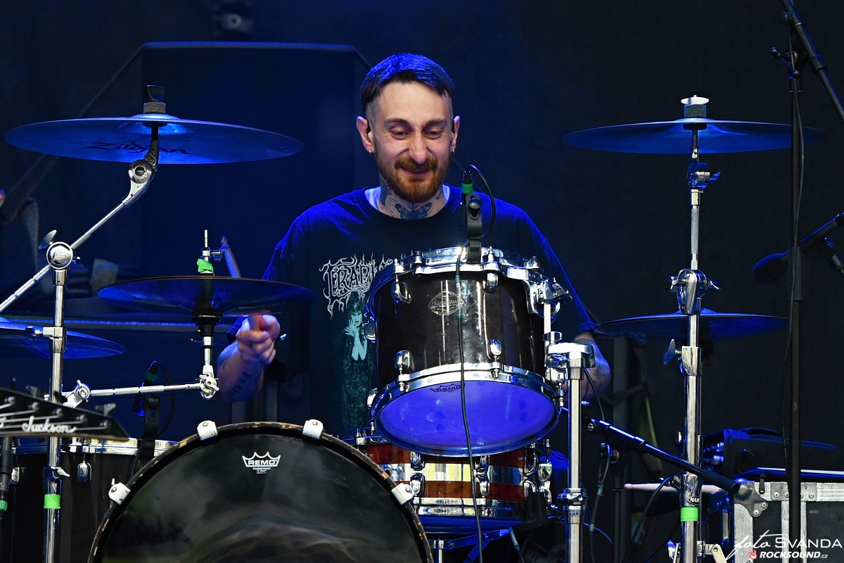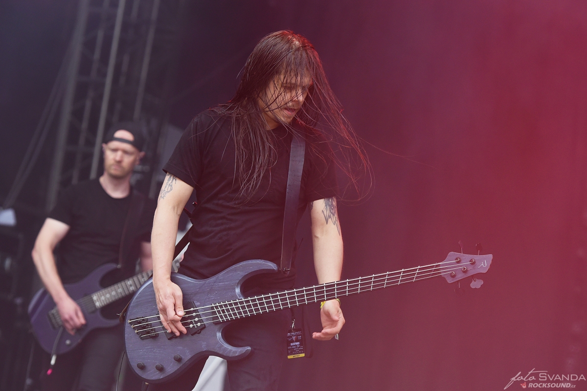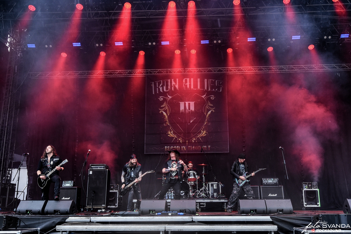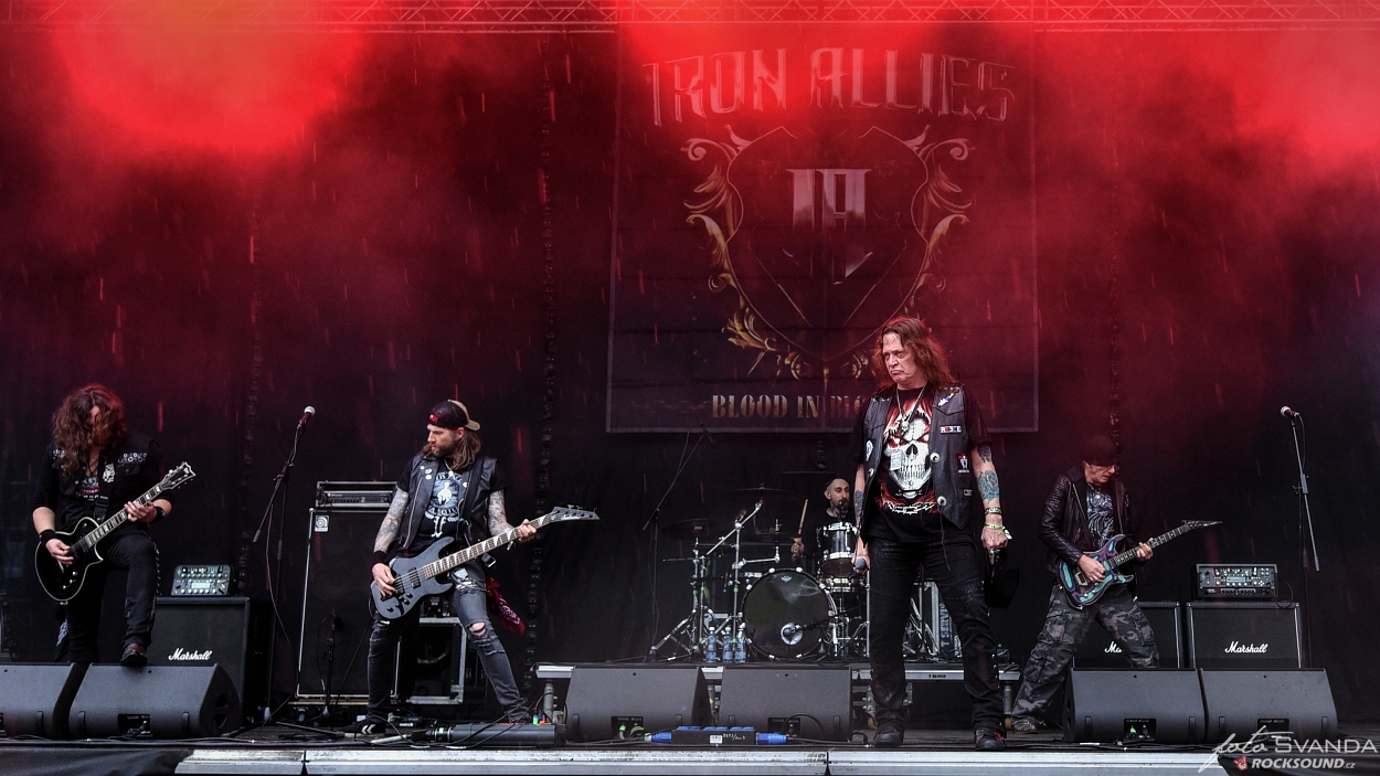 Příznivce klasického heavy metalu nemohl nenadchnout německý kytarista Herman Frank, který letos přijel se svým projektem Iron Allies. Bývaly člen legendárních Accept vystřihl nejedno parádní sólo během sady skladeb z debutového alba této bandy s názvem Blood In Blood Out. Frontman David Reece často k podpoře fanoušků skandoval „Fuck the Rain„. Po skladbě Destroyers of the Night kapela přenechala místo metalcoreové formaci Bloodred Hourglass z Finska, která si zde v Plzni též zahrála poprvé. Bavila nás údernými songy vyprávějící těžké životní příběhy, skladby pocházely především z loňské desky How’s the Heart? Kapela využívala i všemožné samply. Zpěvák Jarkko Koukonen nám pogratuloval k nedávném vítězství na hokejovém mistrovství světa a ocenil „barevnost a pestrost“, kterou fanoušci vytvořili svými pláštěnkami.