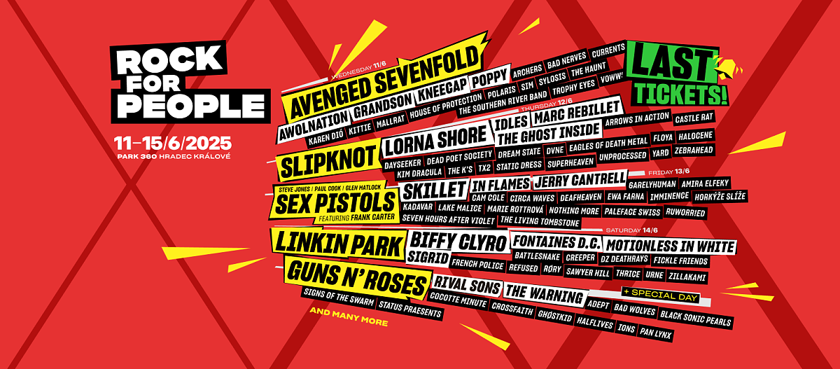Hudební festival Rock for People letos slaví třicáté narozeniny a pro svůj jubilejní ročník si připravil program, kterým ohromil všechny své fanoušky. Do hradeckého Parku 360 v létě zamíří takové hvězdy současné světové hudební scény jako jsou Slipknot, Avenged Sevenfold nebo Linkin Park, stejně jako hudební veteráni Guns N‘ Roses a Sex Pistols.