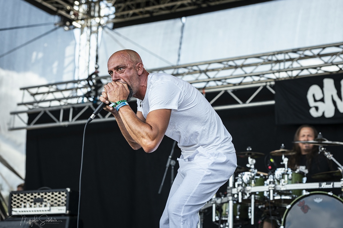 Jako první se na festivalu představili plzeňští crossoveroví borci Snail. Frontman Honza Šašek, který střídal čistý zpěv se screamingem, přišel na pódium v bílém, jeho kolegové v kontrastní černé. Svými divokými pohybovými kreacemi se snažil rozpohybovat první fanoušky u pódia a připomněl též, že kapela nedávno obnovila svoji činnost po dlouhých deseti letech. Snail hráli především tvorbu ze své poslední desky Hypersenzitivity včetně songů jako Man on the Carpet a Toxic Waltz. V pauze mezi dvěma songy si Honza pozval na pódium své dva malé syny a žertoval o tom, že když nemá hlídání, bere je s sebou na festivaly, což mnohým přítomným vykouzlilo na tváři chápavý úsměv.
