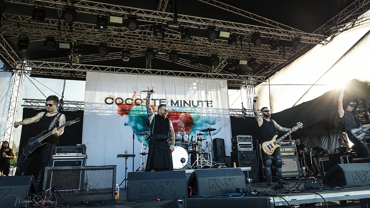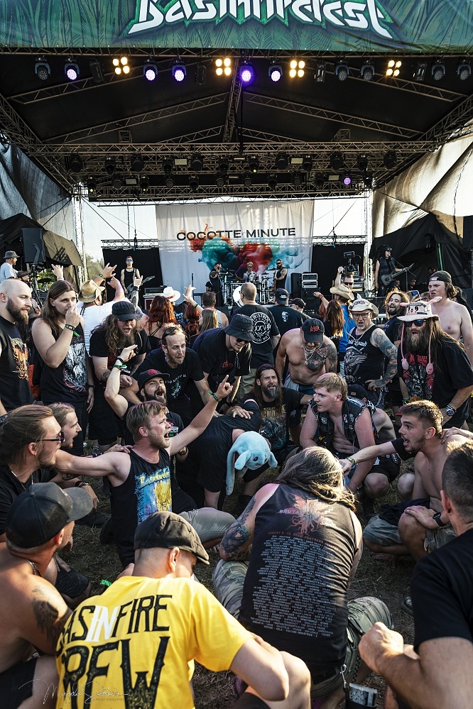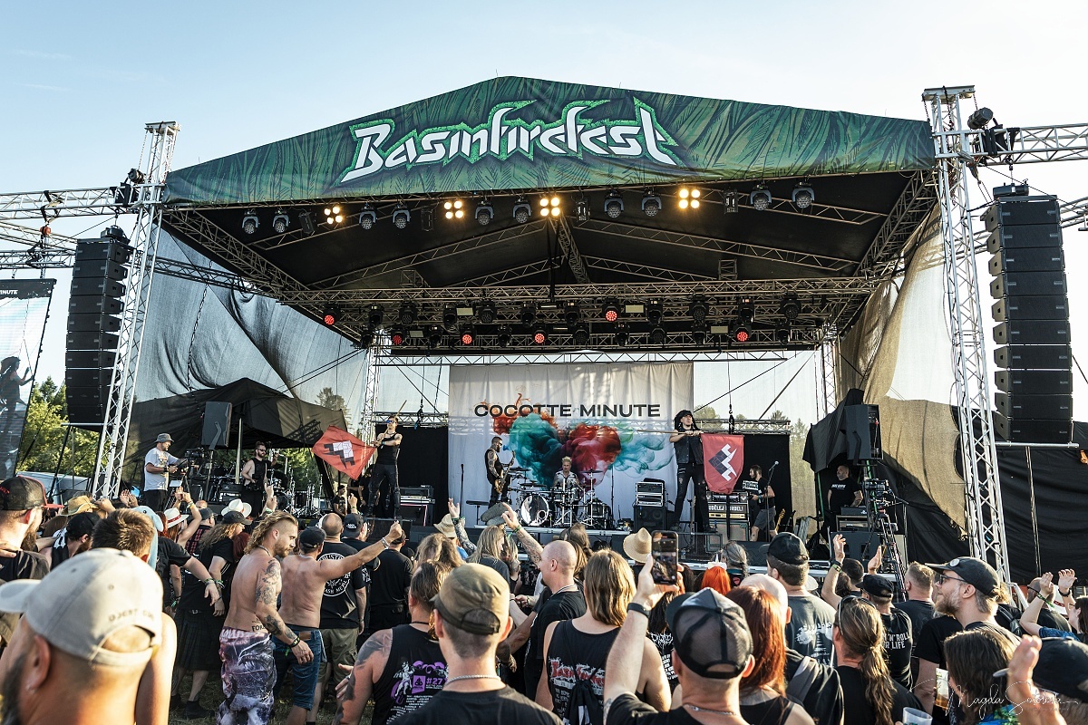Po třech letech se na Basin vrátili crossoveroví borci Cocotte Minute. Své vystoupení tentokrát postavili na výběru svých největších hitovek, takže už zkraje setu nám naservírovali pecky jako Srdce, Tanči, Řeka nebo Králům koruny. Zpěvákovi Martinu Zellerovi se dařilo vyhecovat fanoušky k pohybu a během posledního jmenovaného songu nechal v refrénu vyniknout hlasy z publika. V úderném tempu se i přes stále vysoké teploty pokračovalo dál, na řadu přišla i hitovka Czeko, song Kopem! následoval o pár okamžiků později. Kapela pak ještě pozvala všechny na svůj prosincový koncert v pražské Lucerně. Cocotte Minute zakončili svůj set hitovkou Můj čas.
