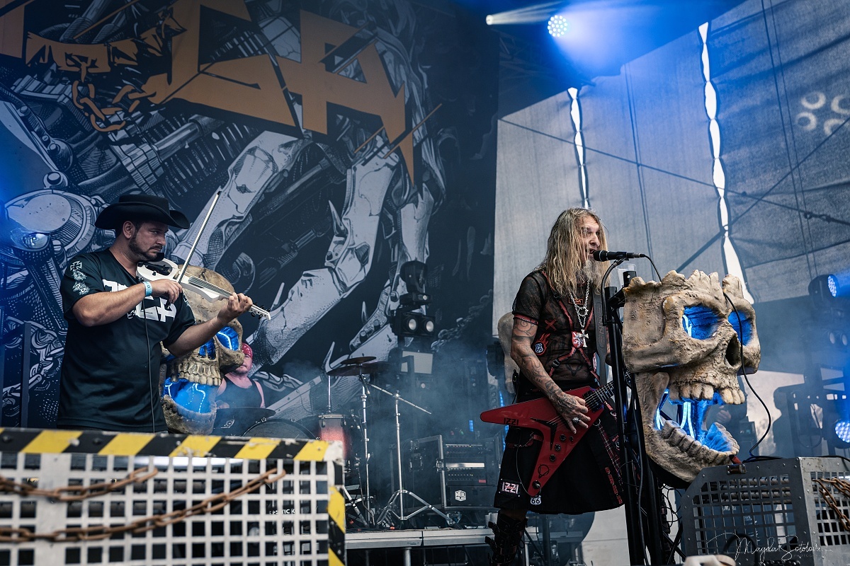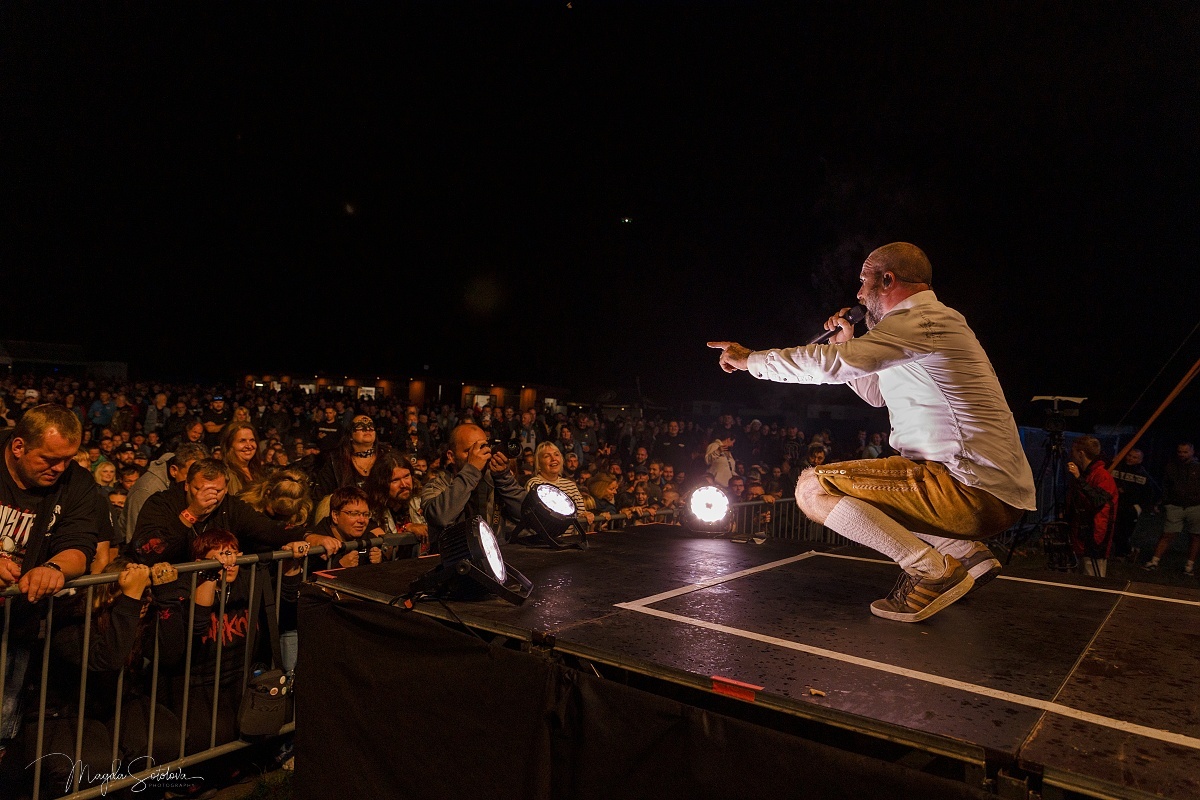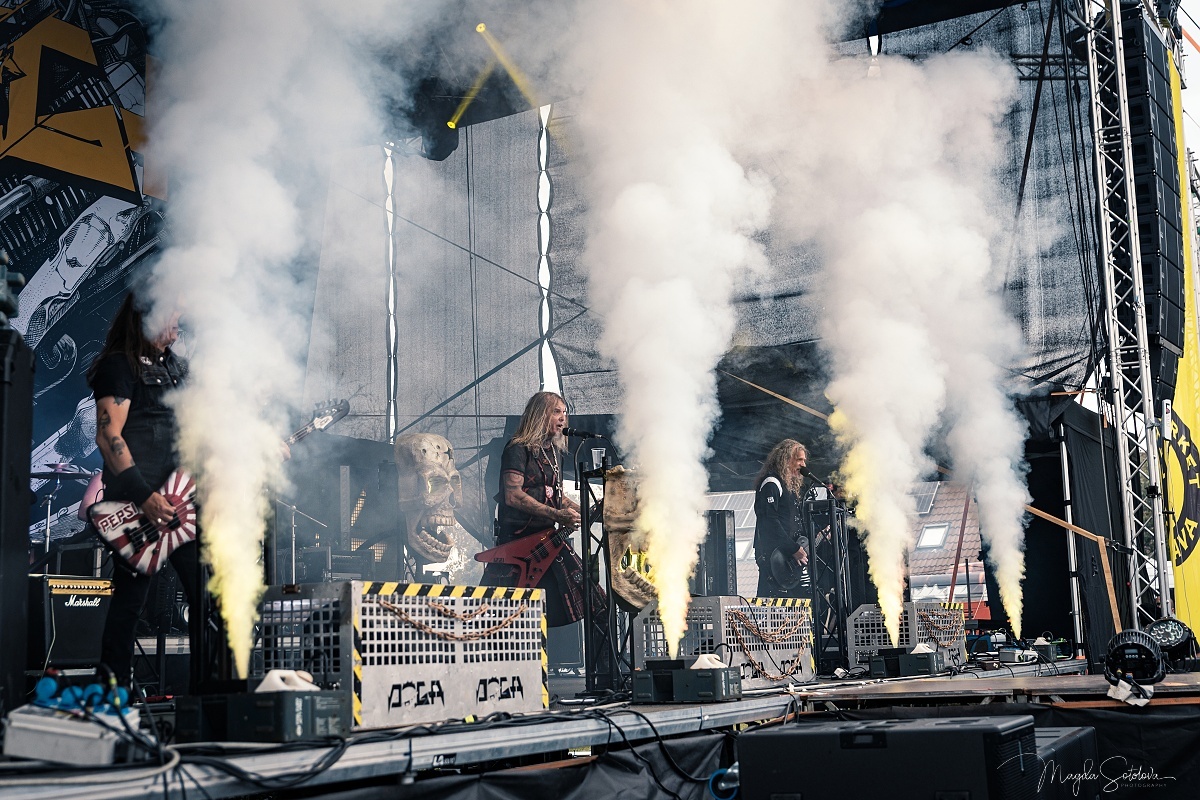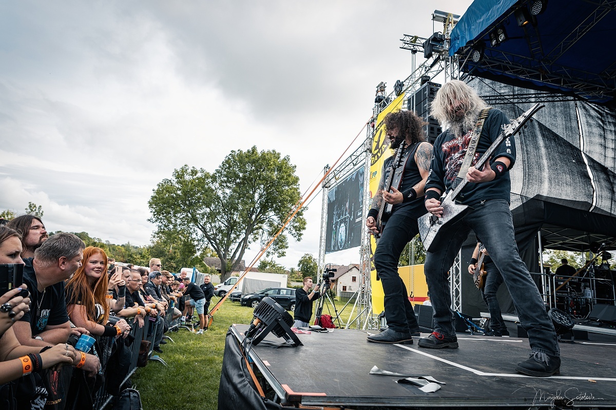 Už v ranních hodinách se na louce vedle areálu hromadily stovky rockových a metalových fanoušků, mnozí dorazili i s karavany, obytnými vozy nebo stany. Po otevření brány v pravé poledne se zdejší rozsáhlý areál začal už poměrně hustě zaplňovat, zatímco se na pódiu připravovali thrashmetaloví veteráni Debustrol. A začali pořádně zostra, peckou Trendshit, po které následovala kontroverzní skladba Zakuklenci. Díky prodlouženému setu, který měly všechny kapely k dispozici, Debustrol zahráli i několik běžně nehraných fláků jako Charles Manson, Kladivo nebo Nenávist. Rychlé tempo skladeb s riffy ostrými jako břitva rozpoutaly před pódiem solidní kotel a chvílemi zde zuřil i circle pit. Celá čtveřice na pódiu slušně řádila a přiváděla své fanoušky do varu. Nechyběly nesmrtelné hitovky jako Protest, Krvavá práce nebo Masoterian, při které si frontman Martin Kolins tradičně přinesl k mikrofonu nastartovanou motorovou pilu. Na závěr pak připadl song Vyznání smrti, po němž si šla kapela s fanoušky pod pódiem podat ruce.