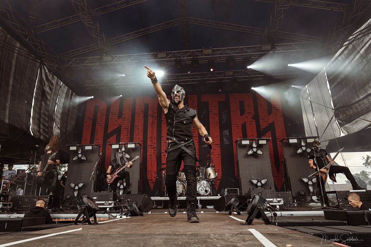 Dymytry přišli na řadu v neobvykle brzkou hodinu. Pódium během příprav zakrývala plachta s tvářemi celé pětice. Se spuštěním intra v podobě hitovky Hey Stoopid (Alice Cooper) a Noidovým dotazem, zda tu někdo je, spustili Dymytry úvodní song Právo volby z nové desky V dobrým i zlým. Následoval další nový song Digitální tráva, během kterého Noid splnil přání jedné fanynce, od které si vzal památník a nechal ho celou kapelou podepsat. Precizní hudební produkci kapely doplňovala čtveřice LED panelů v zadní části pódia. Poté Noid představil všechny své kolegy: Dyma, Gorgyho, Mildora i Artura a otestoval hlasivky fanoušků při jedné z nejtvrdších skladeb kapely, songu Zítřek nám nikdo neslíbí. Dymytry připomněli, že brzy se chystají vydat živák z vybraných koncertů svého jarního turné, mnozí fanoušci si zaskákali při starší skladbě S nadějí. Další fanynce Noid splnil přání, když si od ní vzal telefon a natočil jí s ním část titulní skladby nové desky V dobrým i zlým. Tahle gesta jen potvrzovala, jaký je to sympaťák. Gorgy poté představil celý technický tým kapely a chybět nemohlo perfektní sólo bubeníka Miloše Meiera. Během starší hitovky Ocelová parta si Noid opět klasicky vyžádal od fanoušků střídavé skákání doprava a doleva, následně i mexickou vlnu, kterou si natočil. Během songu Adieu si pak skočil přímo do davu, krátce na to jsme si vyslechli i emotivní projev Dyma. V něm zavzpomínal na své začátky s Dymytry a poděkoval všem za obrovskou podporu i v nejistém období, kdy došlo ke změně frontmana. Konstatoval, že právě díky svým příznivcům si mohou Dymytry žít svůj sen a tato krásná skladba za Noidova klavírního doprovodu následovala. Dymytry se pak rozloučili svou největší hitovkou Strážná věž.