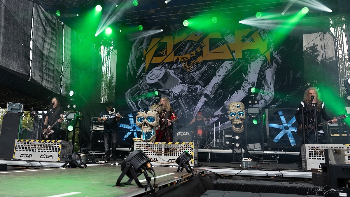Na této nabité akci nemohla chybět hardrocková legenda Doga, jejíž frontman Izzi je vyobrazen ve znaku Výravy. Na pódiu nechyběla trojice obřích osvětlených lebek a vyvýšené podstavce ověnčené řetězy. S dozněním intra přišla celá čtveřice na pódium v rugbyových helmách, Izzi nakopnul do davu míč a rozjel se úvodní song Od soumraku do úsvitu. Všechny tak čekala pořádná nálož řízného hard rocku a peprného humoru. Už při tomto si Izzi dal odpovídačku s početným davem před sebou, tak jak má často ve zvyku. Na několik skladeb se přidal i houslista Adam Zielonka alias Adam Bernau, kterého si dle Izziho slov kapela přivezla ze svého natáčení v USA. V rychlém sledu po sobě následovaly pecky Jdou po mně, Jsem trochu divnej, Tohle je dobrý nebo hitovka Nejsi nevinná. Před známým songem Zelená varoval Izzi všechny před tímto oblíbeným nápojem, aby nedopadli jako jeden z techniků, který přišel na pódium komplet v zeleném kostýmu. Připomněl též, že se kapela chystá opět vyrazit do USA na krátké turné, což předznamenalo hitovku Route 66. Z praku si zastřílel toaletními papíry při pecce Já se na to… Kapela následně poděkovala všem technikům, pořadatelům i příchozím a vznášející se nafukovací balonky s logem kapely signalizovaly závěrečný song Poletuju.