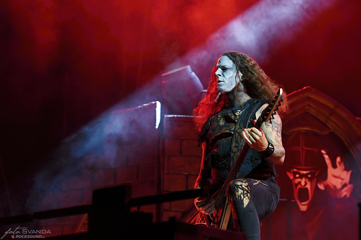 Červená opona s logem kapely zakrývala pódium během finálních připrav. Po doznění intra sjel z vysokého podstavce dolů zpěvák Attila Dorn, po obvodu pódia jsme mohli vidět sestavu gotických oken, které s projekcí doplňovaly záběry na obří LED stěně za pódiem. Ta mnohdy zobrazovala obrovského vlkodlaka s detaily souvisejícími s tematikou skladeb. Na pódium poté přišli bubeník Roel van Helden a varhaník Falk Maria Schlegel se zapálenými pochodněmi, oba měli své nástroje umístěné na vyvýšené plošině vzadu. Velmi hlasitý výbuch pyrotechniky a mohutné ohnivé sloupce vystřelující z přední i zadní části pódia odstartovaly úvodní song Bless ´em With the Blade z nové desky Wake Up the Wicked. Zpěvné refrény, majestátní zvuk varhan, skvělá kytarová souhra bratří Greywolfů a Attilovo charisma vzkřísily ve všech přihlížejících poslední zbytky sil. Powerwolf se hned poté těšili z obrovského aplausu, Attila popřál všem skvělou zábavu. Falk přišel s kouřícím kadidlem, což značilo chytlavou skladbu Incense & Iron, při které si všichni zaskákali. Staršímu songu Army of the Night předcházel dotaz směrem k fanouškům, zda jsou připraveni stát se jejich armádou. Falk poté začal skákat z vyvýšené plošiny dolů, až ho Attila musel umravnit. Chybět nemohla hitovka Amen & Attack, při které si Attila dal s fanoušky odpovídačku a Falk si přivezl na pódium obří varhany, z jejichž píšťal vystřelovaly další plameny. Oba aktéři si spolu potom zatancovali, to předznamenalo píseň Dancing with the Dead.