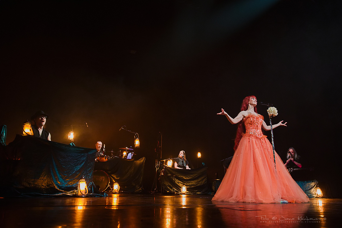 Magický večer otevřela zpěvačka něžnou skladbou Those We Don’t Speak Of ze stejnojmenného alba, kterou za svitu petrolejek přednesla zcela sama. Teprve poté postupně přicházeli na pódium ostatní hudebníci hudebního projektu Auri včetně hostů: parťák z Nightwish Kai Hahto – bicí, Johanna Iivanainen – klávesy zpěv, Mikko Iivanainen – kytara.