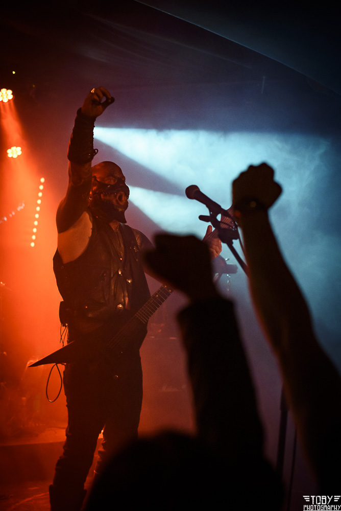 Hned na začátku koncertu, naplánovaného na osmou hodinu večerní, se představila povedená okultní římská sestava Fides Inversa, která si v české metropoli střihla svou premiéru. Už před začátkem vystoupení osvěcovaly pódium červené svíce hořící ve svícnech, které po celý set dokreslovaly okultní, až téměř numinózní atmosféru. Od prvního riffu byla výrazná a řízná basová linka, která se nesla celým vystoupením. Během svého setu odehráli celkem šest skladeb a předvedli nádherný rituální black metal spojující syrovou intenzitu s promyšlenou dramaturgií. Muzikanti se věnovali spíše novější tvorbě z posledního alba Historia Nocturna. Jako ochutnávku lze doporučit skladbu A Wanderer’s Call and Orison, která na zdejším setlistu zazněla hned jako druhá. Vystoupení podpořilo i decentní množství kouře, které atmosféru koncertu skvěle dotvářelo. Pokud si chcete poslechnout povedený italský black metal, tahle kapela by na vašem playlistu rozhodně neměla chybět.