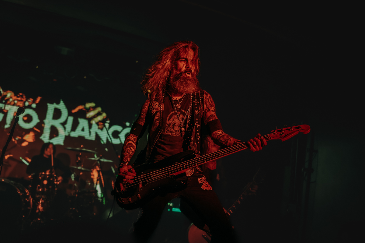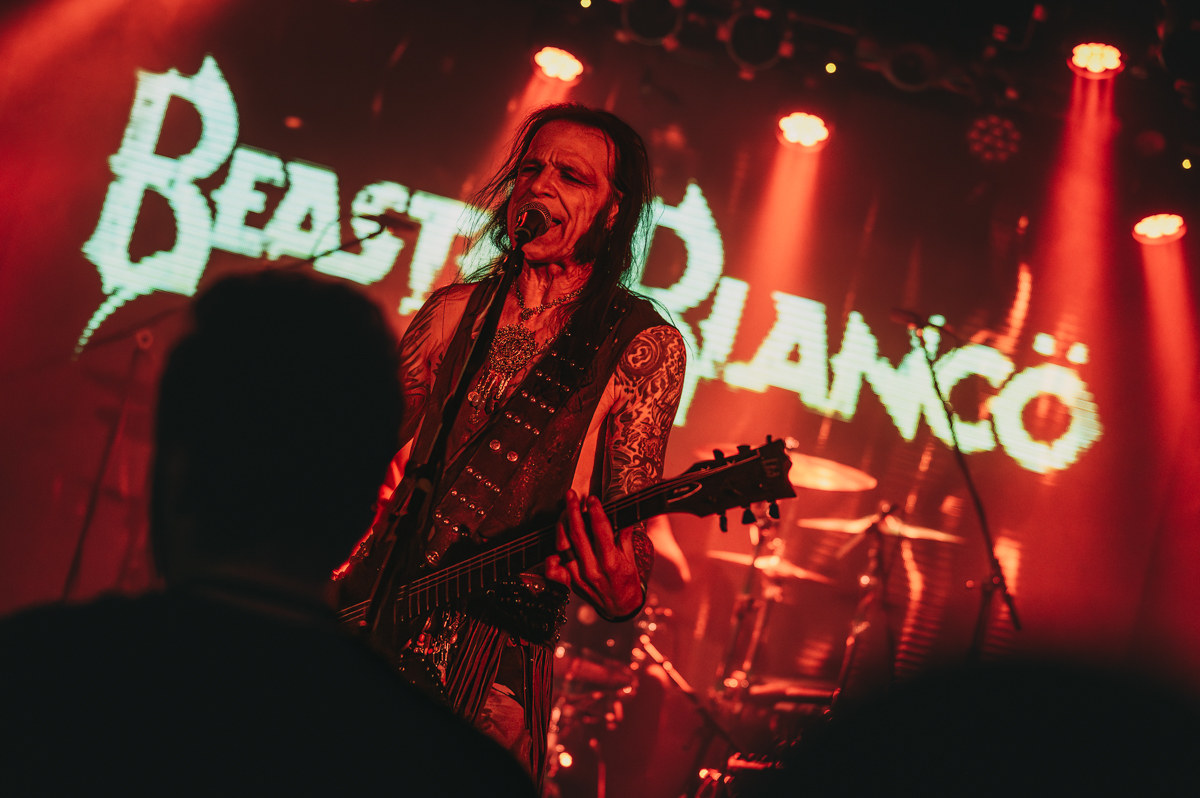 Nyní nás čekali do třetice všeho dobrého Beasto Blanco. S dozněním tajemného intra se rozsvítila červená světla a kapela to odstartovala svižnou a chytlavou peckou Run For Your Live ze své loňské desky Kinetica. Hned vzápětí pak sklouzla ke své první desce Live Fast Die Loud pro píseň Freak. Calico Cooper se po pódiu procházela s palcátem, svými pohybovými kreacemi často připomínala svého slavného otce. Během koncertu též používala svítící hůl, blikající světlo v puse nebo zaujala blikající podprsenkou. Celá pětice v čele s kapelníkem a kytaristou Chuckem Garricem si taktéž své hraní skvěle užívala, radost jí jistě dělal i sborový zpěv mnohých fans zejména v refrénech. Kapela vystřihla i coververzi hitovky Feed My Frankenstein od Alice Coopera, nechyběla pohodová pecka Grind. Když se během následujícího rychlého kousku Motor Queen rozjel menší kotel před pódiem, Calico naběhla i s vlajkou s logem kapely přímo mezi fanoušky, kde s nimi chvíli strávila. Bubeník Trent Tieken následně předvedl svůj um při parádním sóle. Sál potemněl a tajemné samply signalizovaly začínající táhlý song Dark Matter, který Chuck zpíval sám. Později také otestoval hlasivky fanoušků, kteří mu v průběhu songu Honey vypomáhali chorály; kytarista Chris Latham si na něj donesl i theremin. Calico také vzpomněla na loňský koncert Beasto Blanco v Akropoli, který shodou náhod připadl na úplně stejné datum. Poté Chuck představil sebe i celou kapelu, a koncert spěl pomalu do svého závěru, muzikanti se rozloučili hitovkou Breakdown. Všech pět aktérů se krátce nato vydalo za svými fanoušky, a ještě dlouho po koncertě se i s dalšími dvěma kapelami se všemi ochotně fotili a podepisovali.