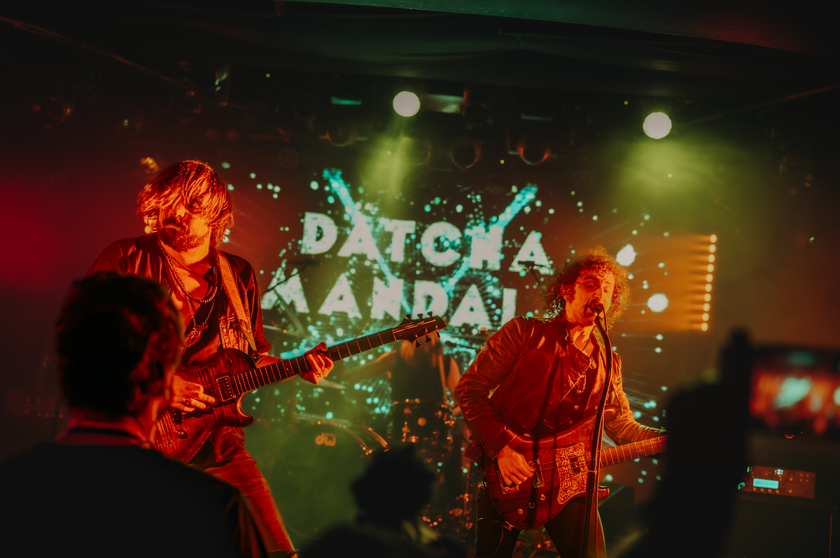 Skvělou rock´n´rollovou jízdu následně rozpoutalo francouzské trio Dätcha Mandala, jež se v Česku představilo vůbec poprvé. Kapela měla rovněž k dispozici projekci, na které se v různých barvách promítalo její logo. Zejména basák a zpěvák Nicolas Sauvey si hraní opravdu užíval, často na pódiu pobíhal ze strany na stranu a vesele si poskakoval. Většina skladeb se nesla v rychlém tempu, což už celkem solidně rozhýbalo několik předních řad. Nicolas se snažil mluvit česky podle svého připraveného taháku a popřál všem, ať si tento večer užijí na maximum. Kapela zahrála i několik skladeb ze své loňské desky, zazněly např. songy Love Myself nebo titulní Coda. V rychlém sledu se jelo dále, na řadu přišla i jedna nová skladba, která dle Nicolasových slov teprve vyjde. Song She Said byl věnován kapele Beasto Blanco, bubeník Jean-Baptiste Mallet se vyřádil ve svém krátkém sóle. A po doznění závěrečné skladby byli všichni taktéž pozváni na setkání k merchandisu.