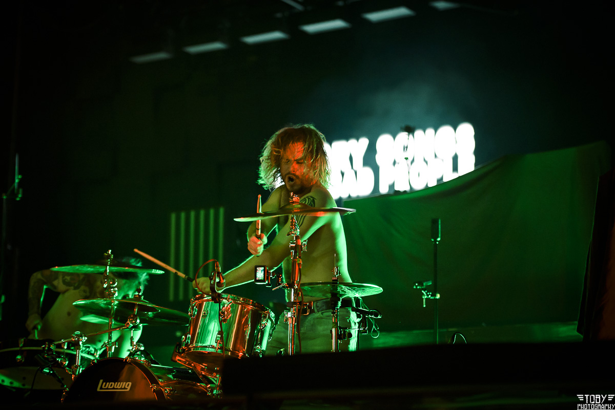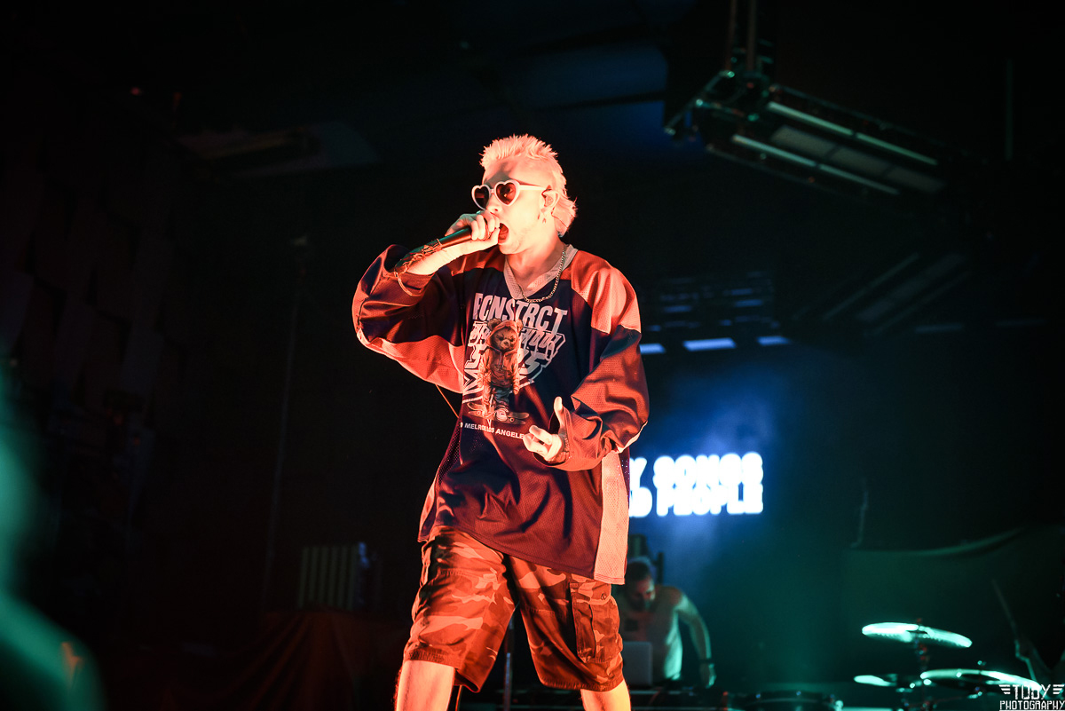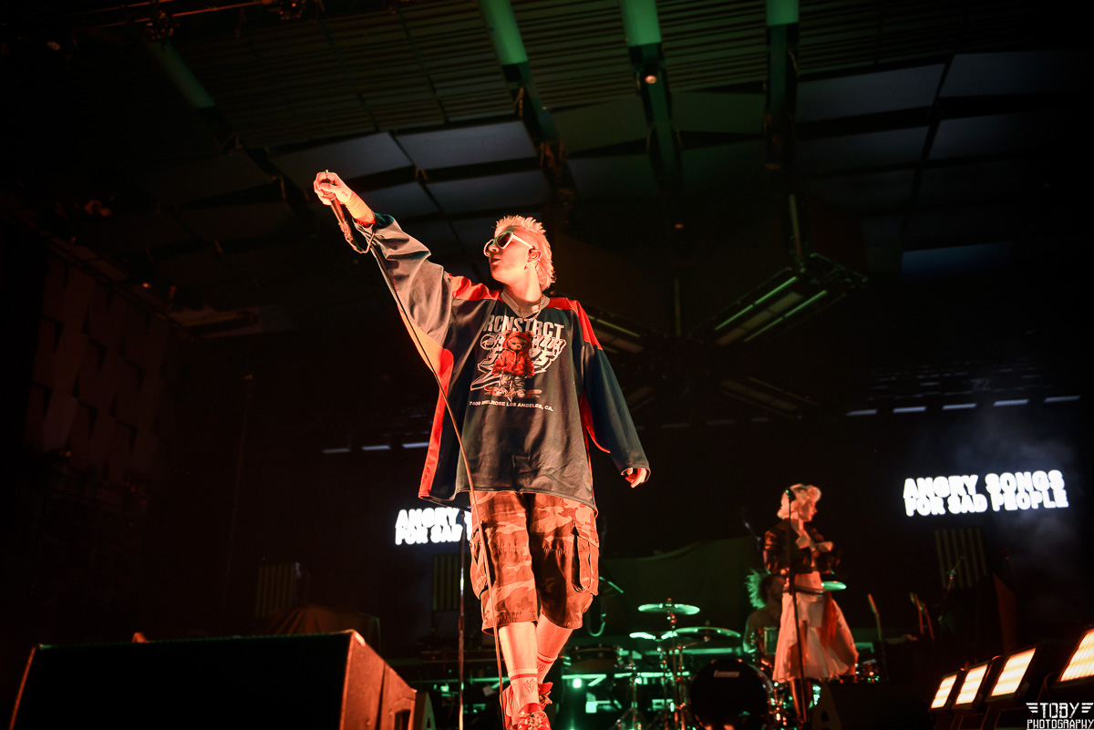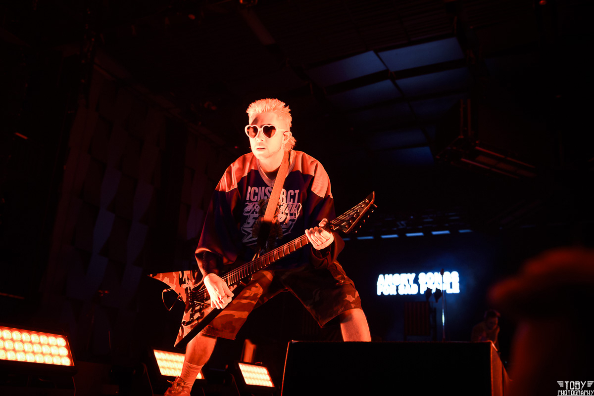 Dveře Fora se otevíraly v šest hodin, a o půl osmé se už mohlo jít na to. Sál již byl z velké části zaplněný, a to včetně obou ochozů. Nad obrovským pódiem se rozsvítil nápis Angry songs for sad people a na potemnělém pódiu se začaly rýsovat obrysy prvních postav této electro-punkové formace.