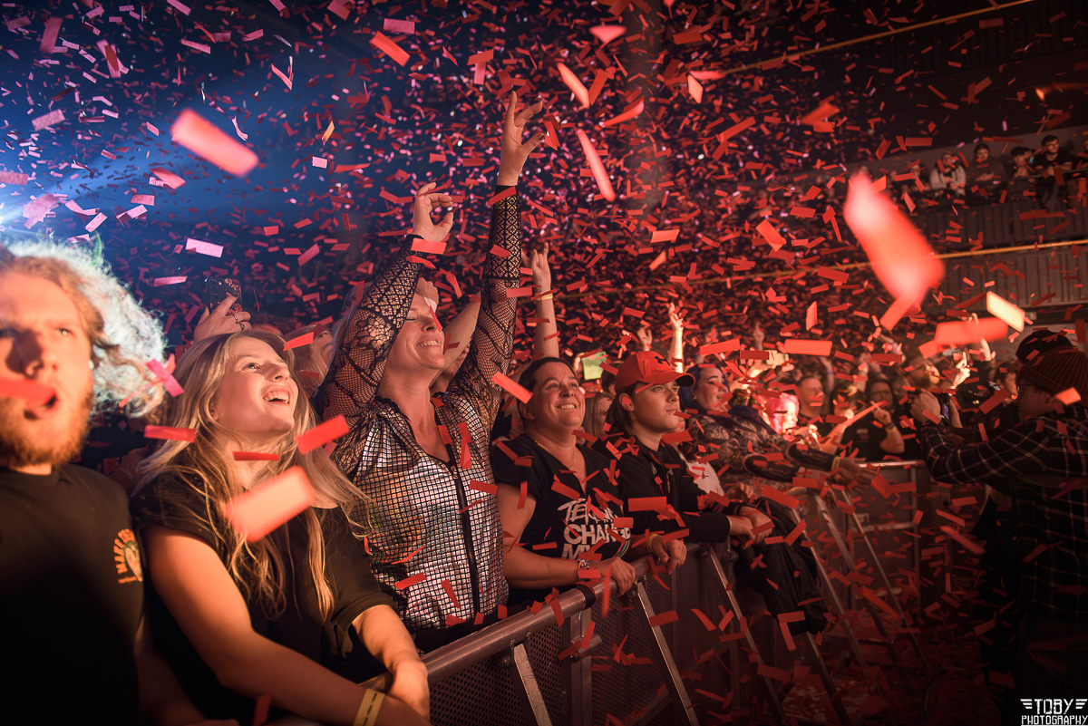 Hlavní hvězda večera začala také s drobným zpožděním, které však zážitek z koncertu nijak neovlivnilo. Již u předkapel bylo v davu vidět mnoho příchozích v roztodivných oblečkách jako z devadesátek, nyní jejich koncentrace ještě vzrostla a ve vzduchu už bylo cítit, že začíná pořádně velká party.