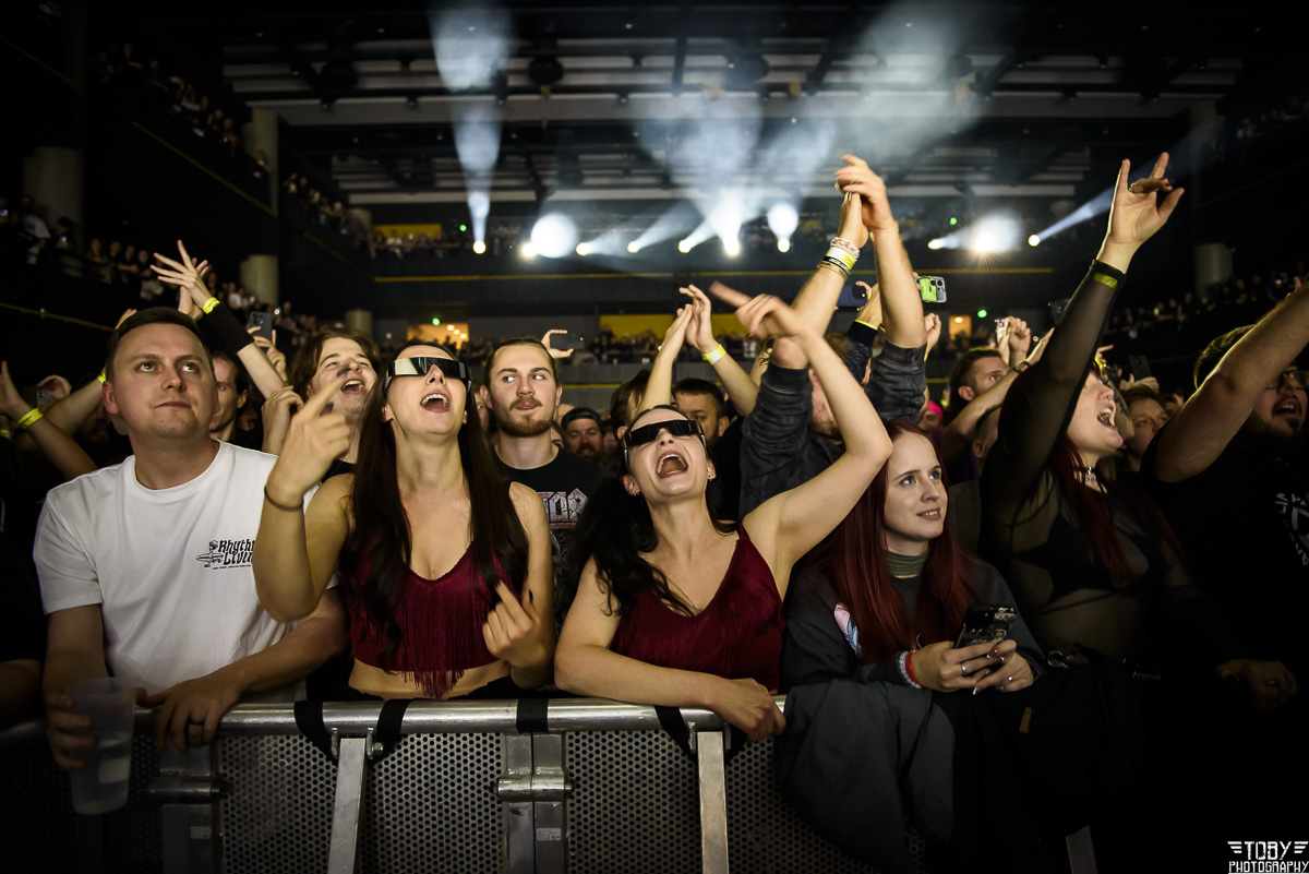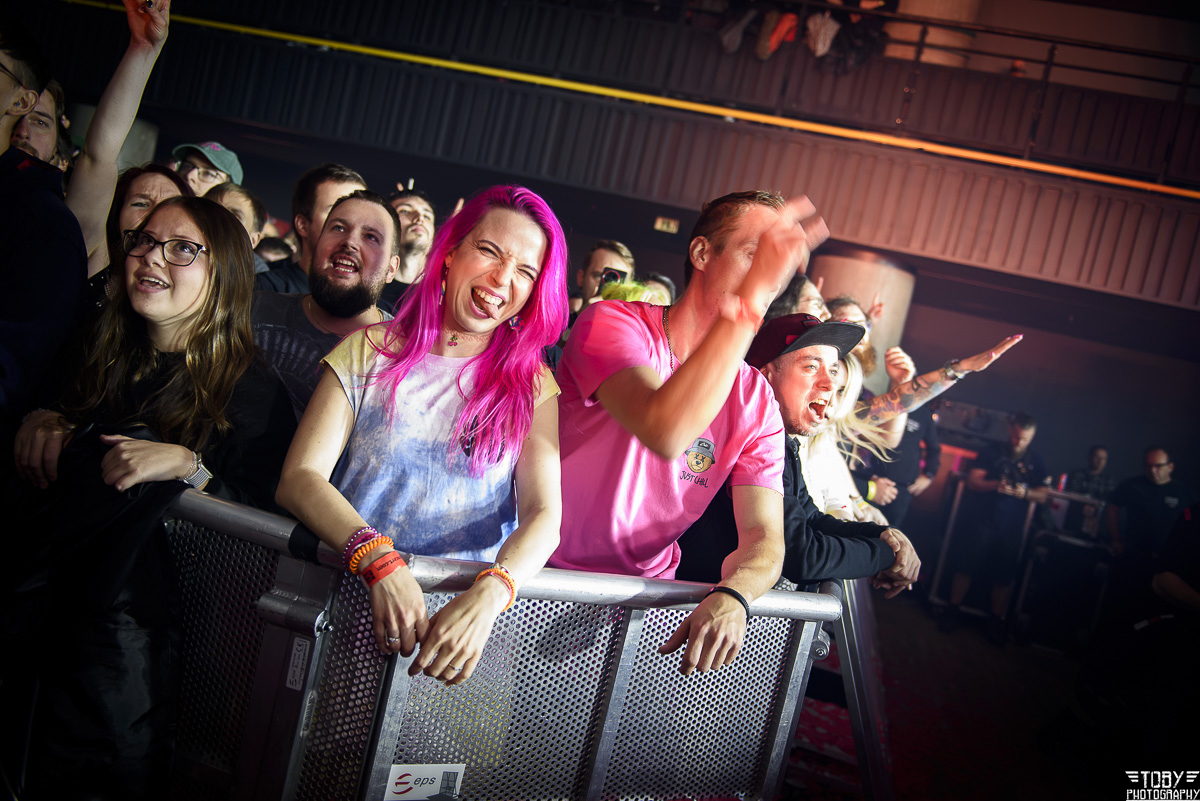 Celá fanouškovská základna na koncertě skákala jak šílená a publikem vládly hned dva moshpity. Jak se blížil konec vystoupení, síla moshpitů se ještě stupňovala. Při posledním triu skladeb RATATA, Spaceman a We Got The Moves už byly moshpity spíše bitevní vřavou. Aspoň Pražáci ukázali klukům z Electric Callboy, že se umí pořádně hejbat!